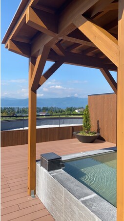 これまでの温泉露天風呂付和洋室の一部を改装し、広々とした空間をいかした植栽やチェアの配置と、露天風呂上部に新たに屋根を設置することでより快適に温泉露天風呂を愉しむ環境が整備されました。