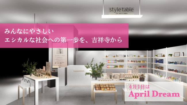 株式会社Peaceは、2023年4月21日(金)に吉祥寺パルコ1階に「style table 吉祥寺パルコ店」をオープンいたします。