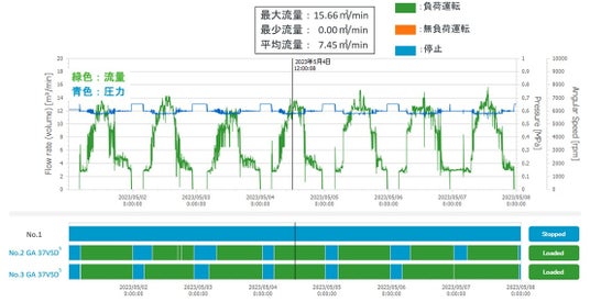 2024年4月にアトラスコプコのGA 37VSDs FFとER(エナジーリカバリー)を導入後、以下の効果が確認されています。