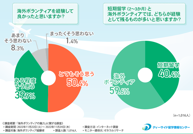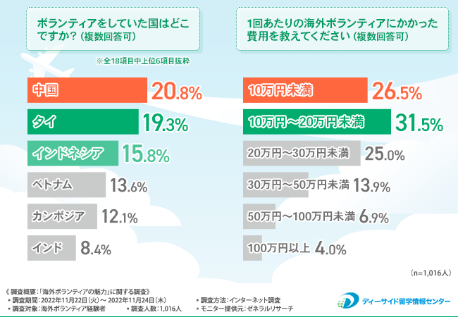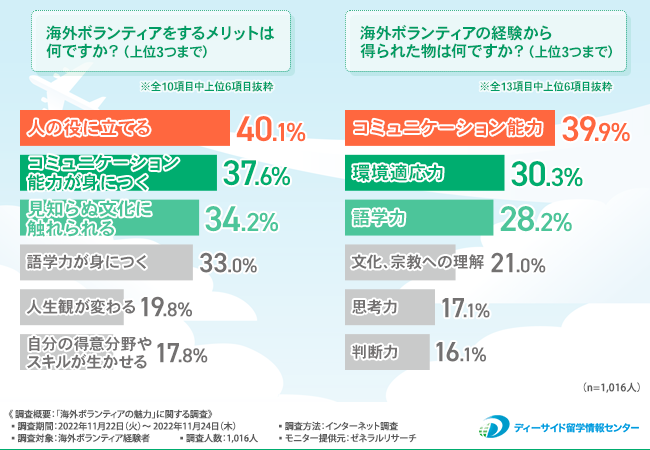 そこで今回、海外留学支援事業を行っている『ディーサイド留学情報センター(商号:株式会社アットワールド)(https://www.highschool-world.com)』は、海外ボランティア経験者を対象に、「海外ボランティアの魅力」に関する調査を実施しました。
