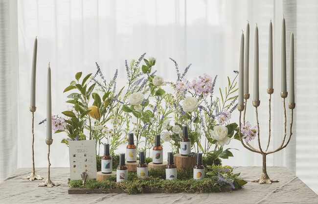 今回オリジナルで制作した8種類の香りは、複数の香りが混ざり合っても心地よく、お料理の邪魔にならない植物のナチュラルな香りです。植物の天然成分から抽出された香料だけで生み出された香りは優しく穏やかで誰もが心地よく感じるものを厳選しました。それぞれにインスピレーションとなるキーワードが名付けられており、好きな香りで選ぶことも、その時の気分に合うキーワードで選ぶこともできます。