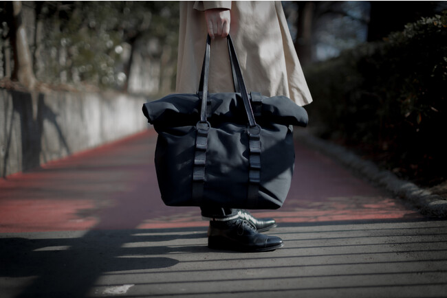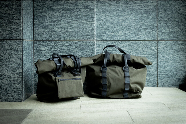 ファーストコレクションのVoyage(ヴォヤージュ)は、ハンドルの場所を自由に変更でき、ワイヤーを内蔵した本体によりロールトップはもちろん、フラップバッグ・縦型トートのような使い方も可能にする。