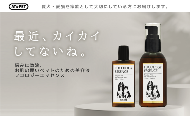悩み改善商品を展開するラムズマークス株式会社(本社所在地:東京都世田谷区、代表取締役:増村 光一郎 https://rams-marks.jp/)は、トラブル肌でお悩みの人へ、フコイダン保湿ローションを販売。そのラムズマークス社が、近年増加傾向にあるアトピー肌のペットに向けた新ブランド「AT・PET(アトペット)」より、保湿美容液「フコロジーエッセンス」を2022年7月1日に発売開始。