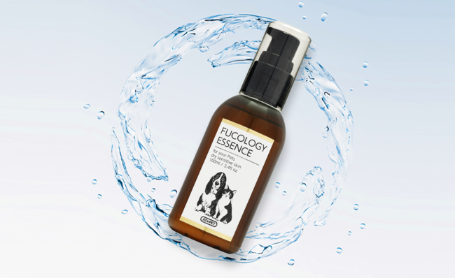 今回発売されたフコロジーエッセンスは、ペットが舐めても安心な成分だけでできており、主に天然成分のフコイダンが持つバリア機能を利用した保湿ケアで、薬やステロイドの副作用を気にせず、トラブル肌から健康な皮膚へ導きます。