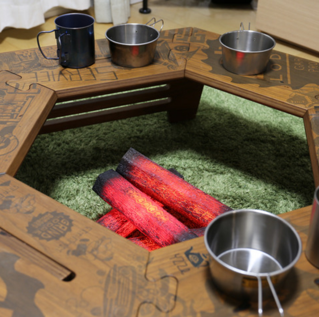 みんなで囲む焚き火は心地良く、食事、お喋り、個々がスマホいじっていても、同じ明りを介して対面してることで特別な時間になります。そんな時間を作るために、みんなを火の周りに集める為のアイコンになっていたのが「六角テーブル」です。