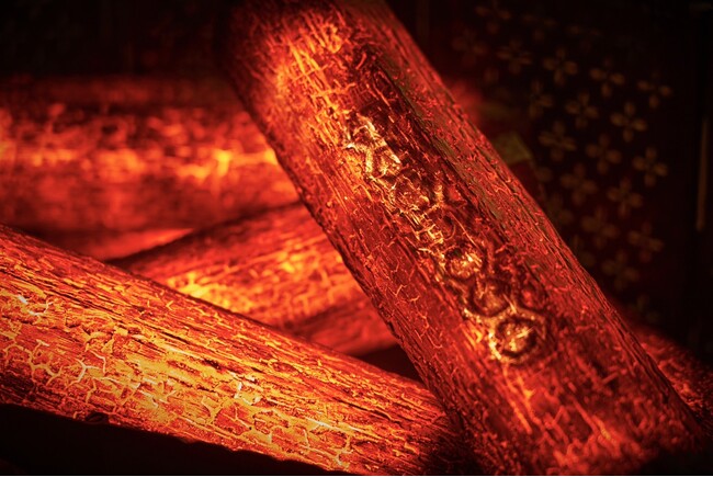 焚き火台から出したら誰もが間違えるであろうリアルで雰囲気のある外観と、3種類の点灯モードにより特別な空間を演出する灯かりに仕上げました。