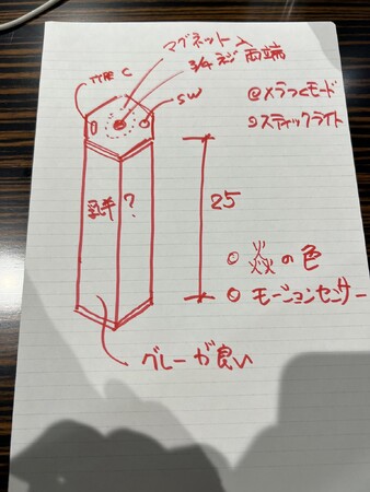 そう言って近くにあった紙に赤ペンでデザインを走らせたのが、六角テーブルの生みの親である大熊規文氏。(株式会社TheArth社長)