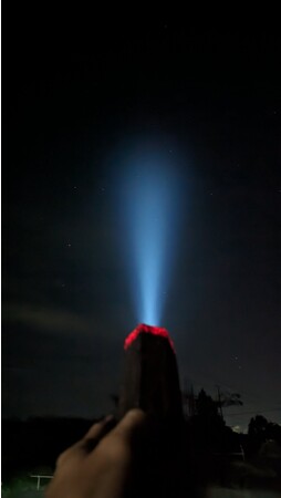 照射範囲が狭い強力な光を特定の場所に当てることができるライトです。暗所での歩行時に数メートル先まで足元の状態を確認することや、複数人での歩行の際に後ろから道筋を案内出来ます。