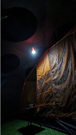 HighとLowの二つの明るさ切り替えが出来て、長時間の連続使用に適しています。タープの下やテント内を広範囲に照らすことができます。一つの照明で広い範囲を均一に照らすことができるため、非常用照明としても非常に有用です。