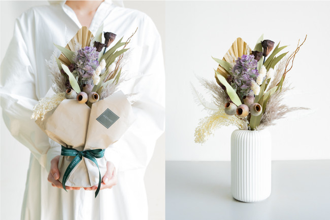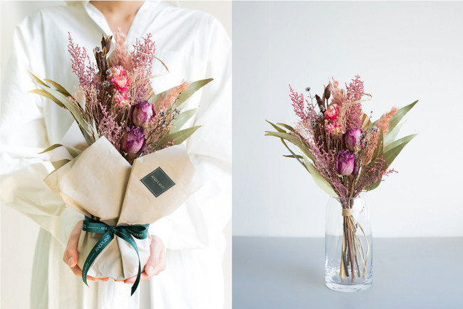 ・柔らかな色合いを、より長い期間お楽しみいただけるようドライフラワーブーケを3種ご用意