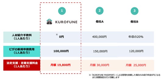 「KUROFUNE PASSPORT」は特定技能労働者の法定支援・定着支援を行います