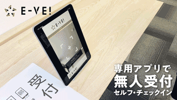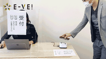 有人受付をする場合も、受付担当者は、距離を保って、受付することが出来、イーべ!受付アプリを用いると、セルフチェックイン機能により、無人受付が可能です。