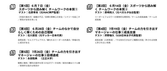 企業向け人材育成プログラム『プロスポーツから学ぶ“成長する”組織の作り方』プログラム開催日程・詳細