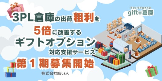この度、株式会社結い人(本社:東京都大田区、代表取締役:前田美徳、以下「結い人」)は、自社の物流倉庫で運用で蓄積したEC向けギフトオプション※1サービスの対応ノウハウをパッケージ化し、他社3PL倉庫(以下「倉庫」)提供する「gift+倉庫(ギフトプラスそうこ)」を始動しました。「gift+倉庫」は、3PL倉庫の通常の物流サービスにギフト対応メニューをアドオンしアップセルを図るモデルで、倉庫の既存リソースを活用するため高額な設備投資が不要で、倉庫の発送代行手数料に比べて粗利を5倍以上※2へ改善することが見込める特長があります。