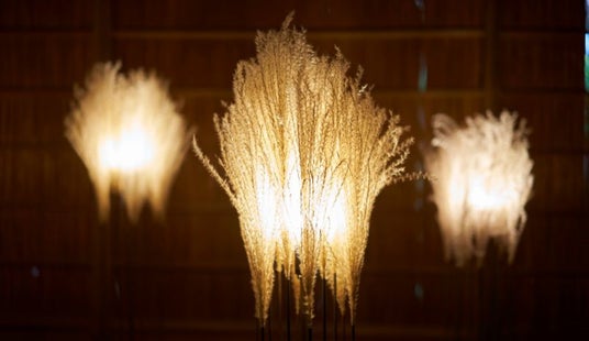 小金井公園のイチョウをテーマにしたアートフラワーのイチョウのランウェイとイチョウアーチが登場します。約15mにもおよぶイチョウのレッドカーペットならぬ黄金色のランウェイは、江戸東京たてもの園までのメインストリートを優しく照らします。その上には、“光る帆”を蓄えたススキやパンパスグラス、秋の草花を配したアートフラワーを使用した、高さ3.5mのイチョウのアーチが頭上に配置され、上下左右どこを見渡しても秋を感じられる空間をお楽しみいただけます。