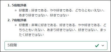 パッケージ評価に必要な、受容性レベルの確認・各部分要素の評価・商品コンセプトとの合致度などの評価指標が用意されており、また目的に合わせた指標についても選択または自由に設定して実施することができます。評価の段階数を変更する等のカスタマイズも可能です。