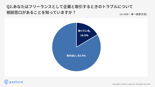 Q2.あなたはフリーランスとして企業と取引するときのトラブルについて相談窓口があることを知っていますか?(n=400・単一回答方式)