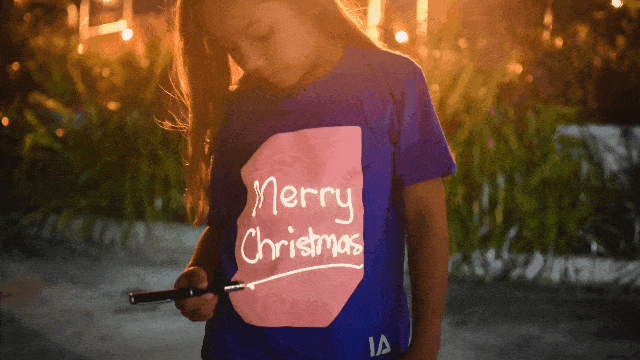 UVライトやスマホのライトで絵が描けるTシャツ。暗闇で約5分間光り続ける! 消えた後は新たな絵を描いて何度も楽しめます。パーティー、イベント、ライブ、クリスマス、ハロウィン等で大活躍!