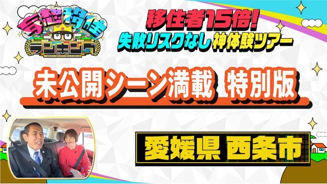 番組では、お笑い芸人のノッチさん夫婦が西条市を訪れ、ひと組ごとのリクエストに合わせた完全オーダーメイド型の無料移住体験ツアーを疑似体験。西条市の先輩移住者さんのお話を聞いたり、グルメやアクティビティを堪能しました。
