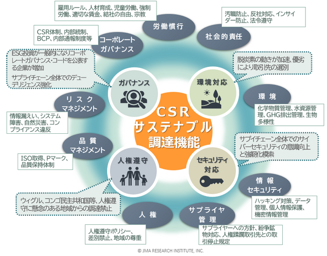 取引先意識調査(サプライヤーへ公正取引、下請法遵守等のコンプライアンス、CSR調達に関するアンケート調査)を支援する(株)日本能率協会総合研究所(以下:JMAR)は、未来調達研究所株式会社所属の坂口孝則氏と共同で、日本の購買調達現場と取引先様(サプライヤー)を取り巻く実態の把握と改善に資するCSR調達/サステナブル調達支援プログラムを開発し、ESG、SDGs、コーポレートガバナンス・コードといった社会的要請に対応した支援サービスを開始しました。