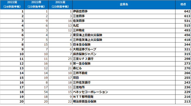 新型コロナウイルス感染拡大からの経済活動再開、資源価格高騰、円安など、企業を取り巻く環境が大きく変化する中で、学生の意識はどう変わっているのか。夏(24卒就活前半戦)、春(24卒就活後半戦)の2回に分けて学生の意識を読み解きます。今回は就職・採用戦線プレシーズンの2022年夏(24卒就活前半戦)ランキングをお届けします。
