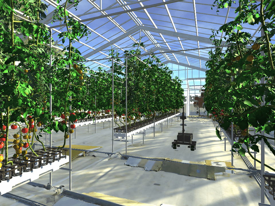 本プラットフォームは、Unity (3Dゲームエンジン) を用いて植物や農業用ハウス、地面など周辺環境を高精度Lidarを活用して完全再現しております。それによりリアルな周辺環境データの生成が可能です。当社では、本プラットフォームとロボット開発用オープンソースミドルウェア (ROS) を連携させ、UGV開発のための走行シミュレーションを実現しています。また、走行シミュレーションの結果を用いて、実際の農業用ハウス内でのUGVの自律走行および画像や動画データの収集を効率よく行い、解析する実証実験も開始しています。