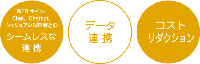 WEBサイト、chat、chatbot、ウィジュアルIVR、ネイティブAppなどからシームレスに連携し、会話を開始することが可能です。今まで「電話」へ誘導していた案内は不要となり、会話もWEBで完結することができます。