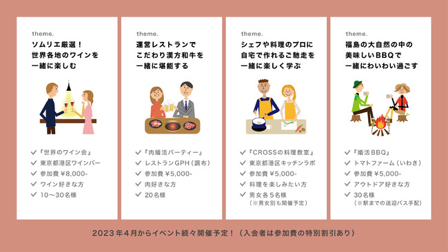 より多くの出会いのきっかけを作るために、定期的に食と婚活の交差交流イベントを開催します。