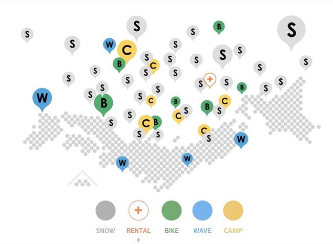 当事業は、日本全国のスキー場を繋げて業界を活性化させることを目的に、1道6県の地域でアースホッパーコンソーシアムが行う『全国30のスキー場を繋げ地域消費拡大を目指す「スノーリゾート経済圏」構築に向けた実証事業』として観光庁が進める実証事業にも採択*2されており、地方における消費促進や観光地の活性化という点でも注目されています。スキー場がグリーンシーズンに展開するMTBやキャンプ、顧客層と相性のいい施設にも拡充し、業界の活性化にも貢献しています。