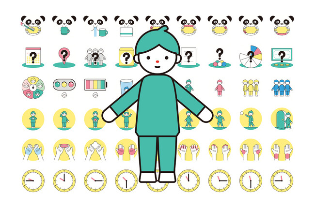 *着替えの手順書や歯磨きの手順書、お風呂の手順書など、生活場面に使えるイラストを多数掲載しています。