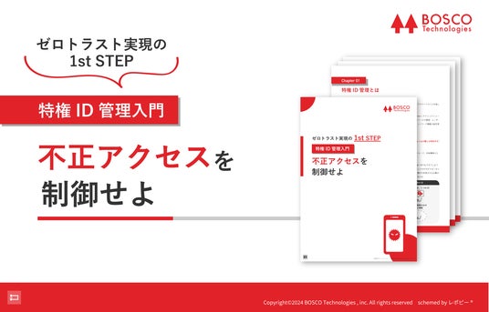 「ゼロトラスト実現の1stSTEP【特権ID管理入門】不正アクセスを制御せよ」をダウンロードする:https://www.bosco-tech.com/document/zerotrust-1st-step-2409/