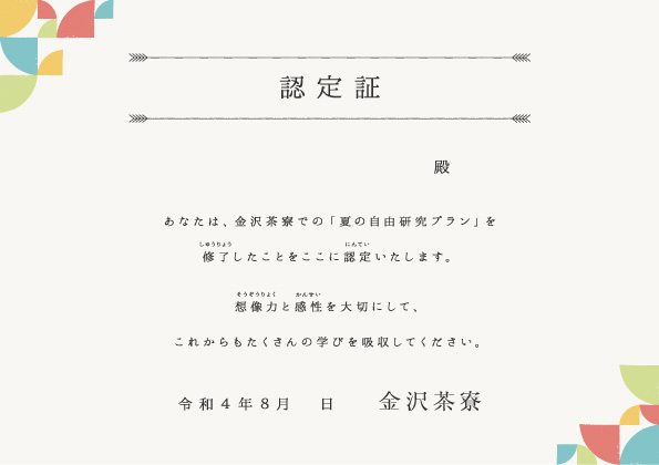 ~8月17日(水)、23日( 火)、25日(木)限定で開催!金沢茶寮オリジナルの認定証をプレゼント~