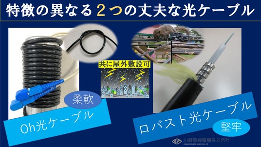 小峰無線電機の特徴の異なる2つの丈夫な光ケーブル 柔軟な「Oh光ケーブル」 堅牢な「ロバスト光ケーブル」