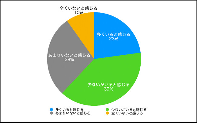 約6割の人が多少なりともいると回答しましたが、「あまりいない」「全くない」と感じてる人も約4割いることがわかります。多くいると回答した人は「23%」しかいないため、全体として結婚相手として考えている理想年収を満たす男性は「少ない」と感じていることがわかりました。