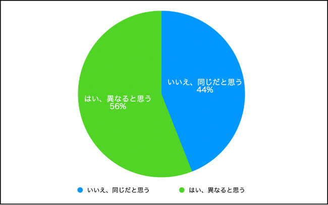 この質問は意見が割れましたが、半数以上の人が「異なる」と回答しています。