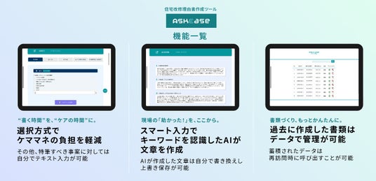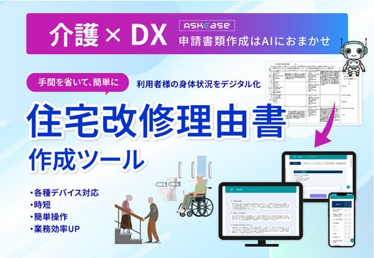 大阪市のエコノハブレイン株式会社(代表者:代表取締役 上田 司)は、ケアマネジャーの皆様の声を反映し、「一度使ってみたらわかる、その便利さ」を追求した住宅改修理由書作成・管理ツール「ASKEASE(アスキー)」を、2025年10月13日(月)より提供開始しました。