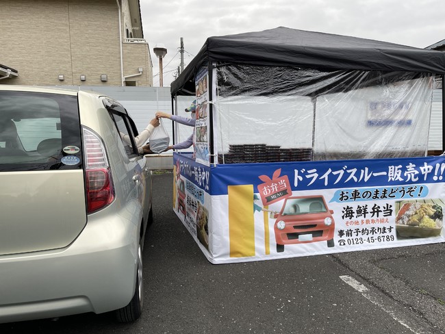 【都市圏ではデリバリー専門業者 地方ではドライブスルーコーナー(タープテント式)】
