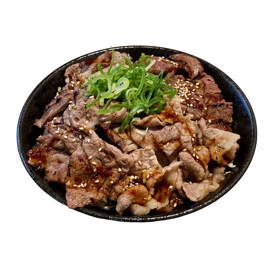 カルビ、ハラミ、豚ロース、セセリが乗ったボリューム満点な一品。