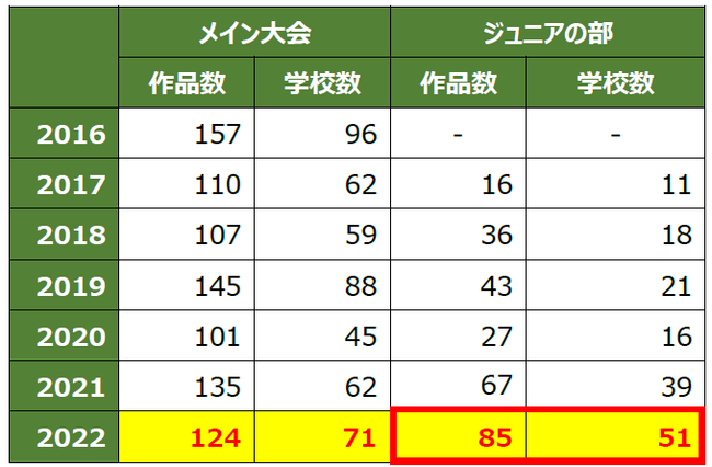■2022大会 ジュニアの部で過去最高応募数を記録