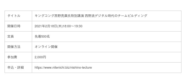 セミナー詳細:https://www.nitenichi.biz/nishino-lecture