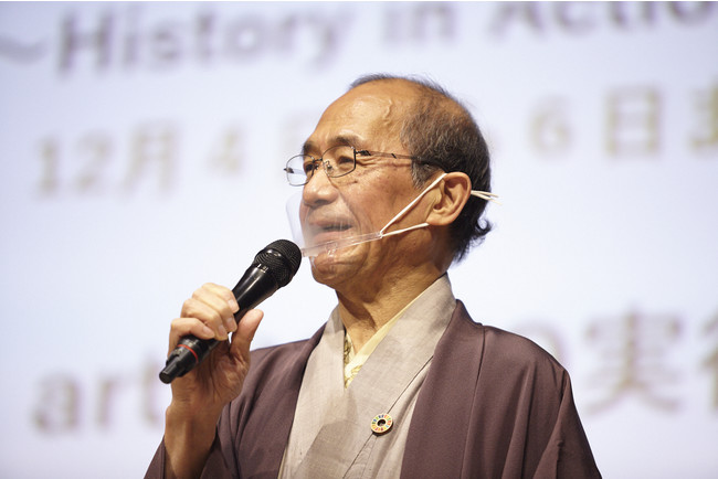報道関係者に向けたプレスビューの冒頭では、artKYOTO実行委員会委員長の門川大作京都市長が挨拶し、昨