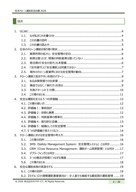 ドローン運航・コンサルティング・スクール事業を手掛ける株式会社ダイヤサービス(本社:千葉県千葉市花見川区、代表取締役:戸出智祐)は、2026年3月10日、『日本ドローン運航安全白書 2026』を無償公開しました。