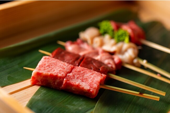更に公式予約サイトから予約頂き3月14日にご来店のお客様には【和牛焼串 近江牛ヒレ串】1本を加えた全16品の特別コースとさせていただきます。