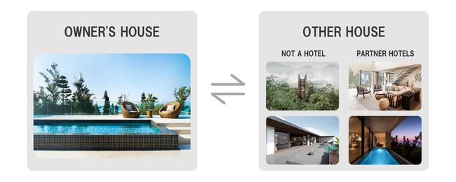 「UMITO」シリーズのオーナーは、自らが保有しているホテルの一室だけでなく、他の「UMITO」シリーズやNOT A HOTEL各拠点の施設を相互利用することが可能です。今後も熱海などで新たに相互利用可能な土地の取得・開発を予定しています。