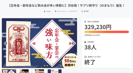クラウドファウンディングにて目標金額を大幅に上回る329%達成!