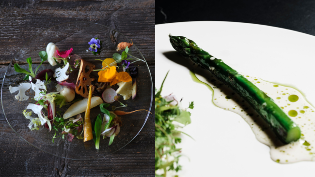 大胆に野菜を使った料理の数々が注目を集める。野菜はほぼすべて、レストランそばの畑で、約130種類を小林シェフ夫妻自らが栽培。野菜を生かし尽くすガーデンガストロノミーとして、ゲストは日本全国からひっきりなしに訪れている。