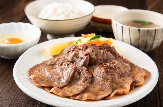 す。薄切り牛たんを素早く炙った、博多で一番人気の「牛たん麦とろろ定食」のほか、柔 らかく煮込んだ「牛たんシチュー」など、専門店ならではの自慢のメニューをご用意して おります。
