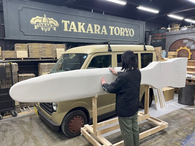 4m級巨大刷毛型看板を展示車両上に設置します。ブース内を彩るタカラ塗料らしさが詰まった手作りの装飾品、色見本ミニカーも見どころの一つです。