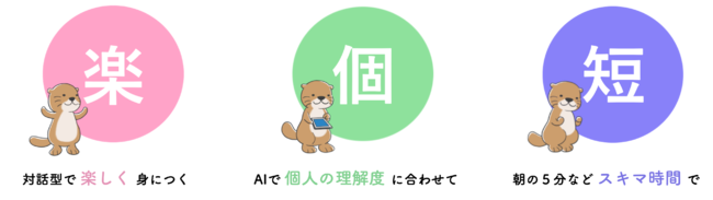 タイピング練習を通じて、学習の基盤となる能力として重要なタイピングスキルを楽しみながら身につけることができます。教科と連携した練習コンテンツで、子どもたちは学習しながらタイピングスキルを伸ばすことができます。また、独自のAIシステムで各個人の間違えやすい問題の再出題や学習状況の記録ができます。