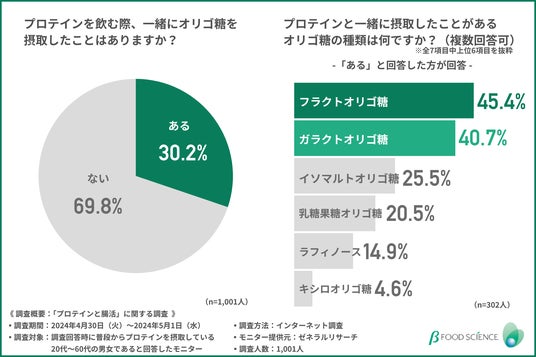 「プロテインを飲む際、一緒にオリゴ糖を摂取したことはありますか?」と質問したところ、約3割の方が『ある(30.2%)』と回答しました。